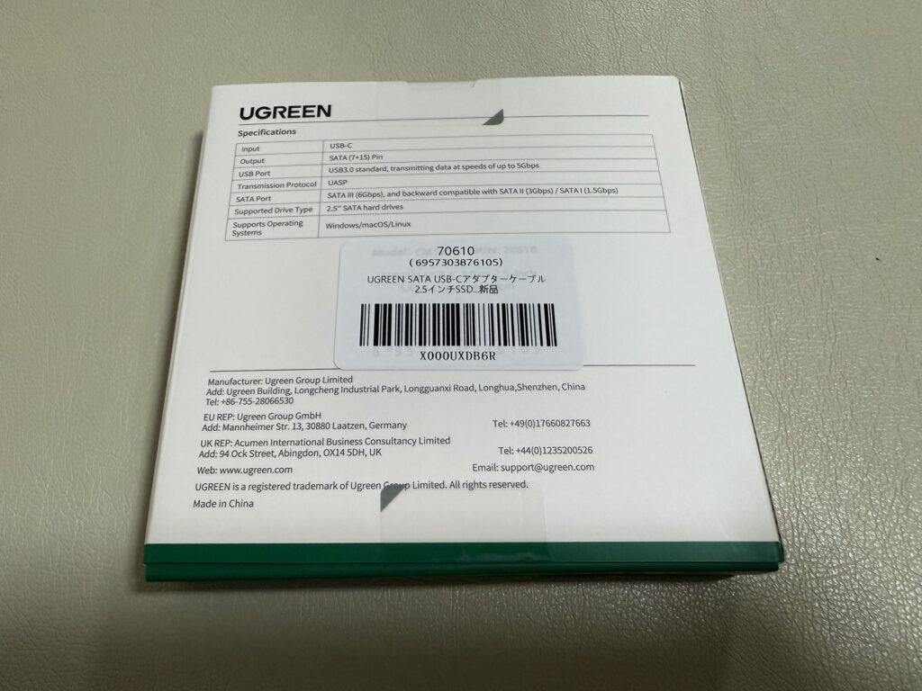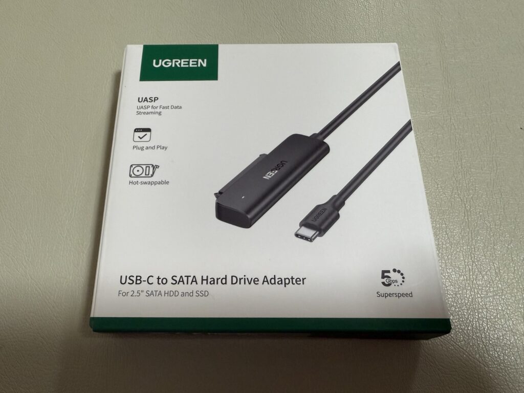 UGREENのUSB-C to SATA Hard Drive Adapterは、取り外したSSDを無駄なく活用できる便利なアイテムでした。シンプルな構造で使いやすく、認識も安定しているので安心感があります。