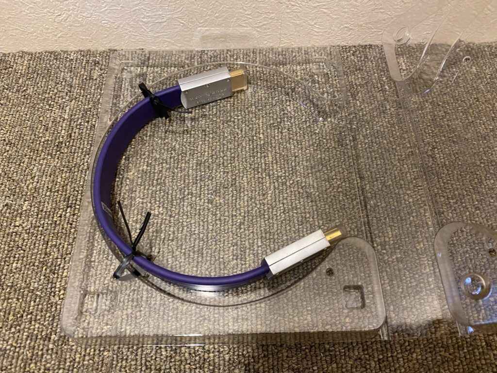 WIREWORLD Ultraviolet/Series7 UHH7は、紫の被膜とオリジナルコネクタで存在感抜群のHDMIケーブルでした。短めを選んだことで少し不便さはありましたが、取り回しのしやすさや接続の安心感はしっかり感じられました。